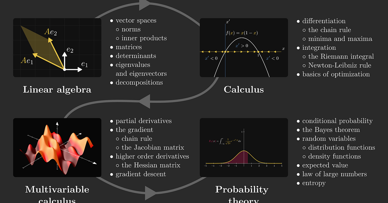 A complete guide to linear algebra, calculus, and probability theory