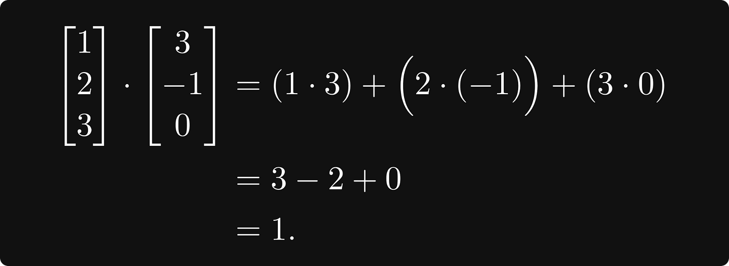 But before getting to the measures, let’s start with the dot product. The dot product is one of the most important foundational operations in mathematics, certainly in applied math topics like data science and deep learning.