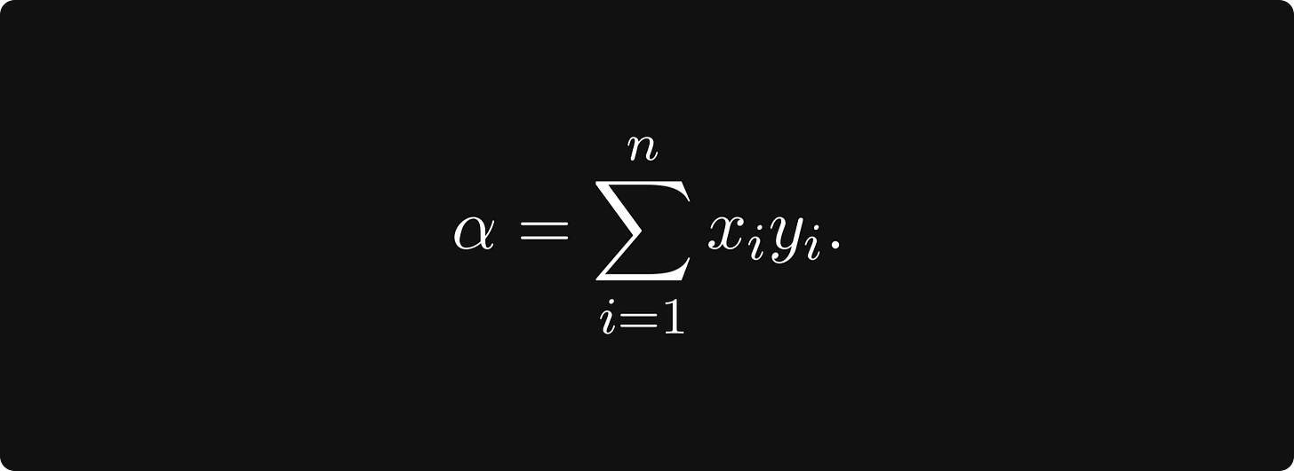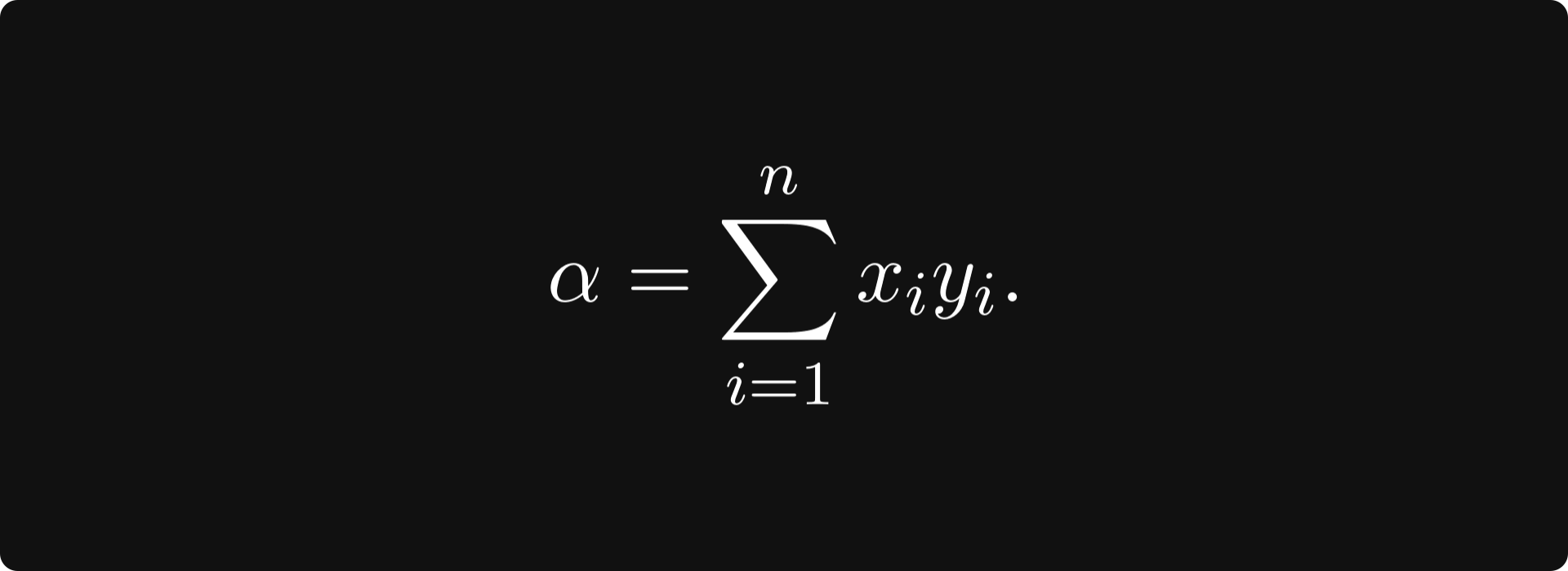 In English: Element-wise multiply all n pairs of data points, then sum.