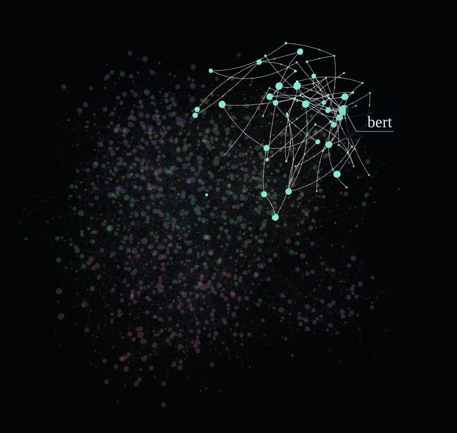 Now you can explore them yourself with a little app I built Codex and Claude built. The app is publicly hosted on GitHub pages at https://the-palindrome.github.io/ml-knowledge-graph/, but you can check the source at https://github.com/the-palindrome/ml-knowledge-graph as well.
