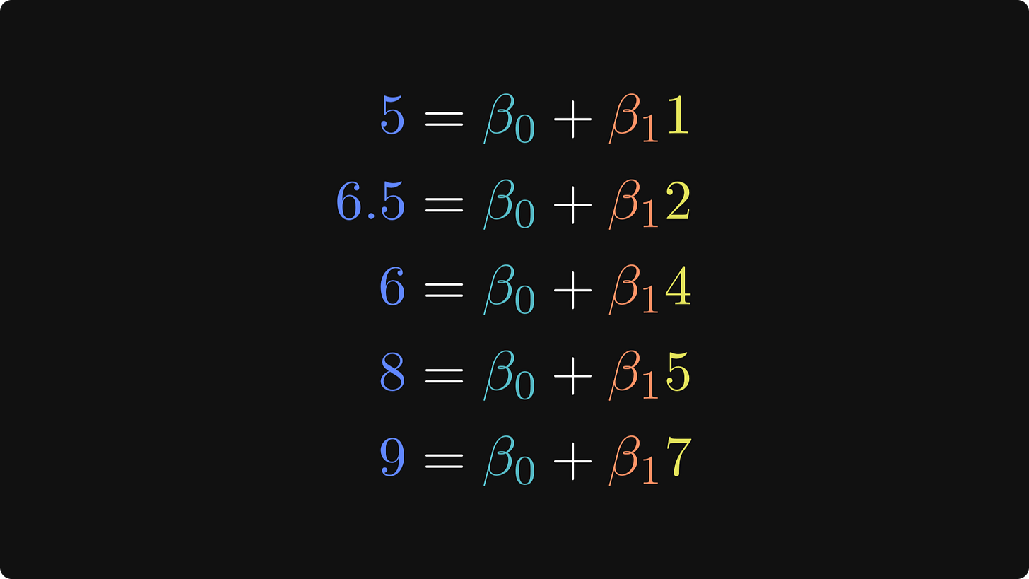 Take a moment to see how these equations map onto each data point in the scatter plot I showed earlier.