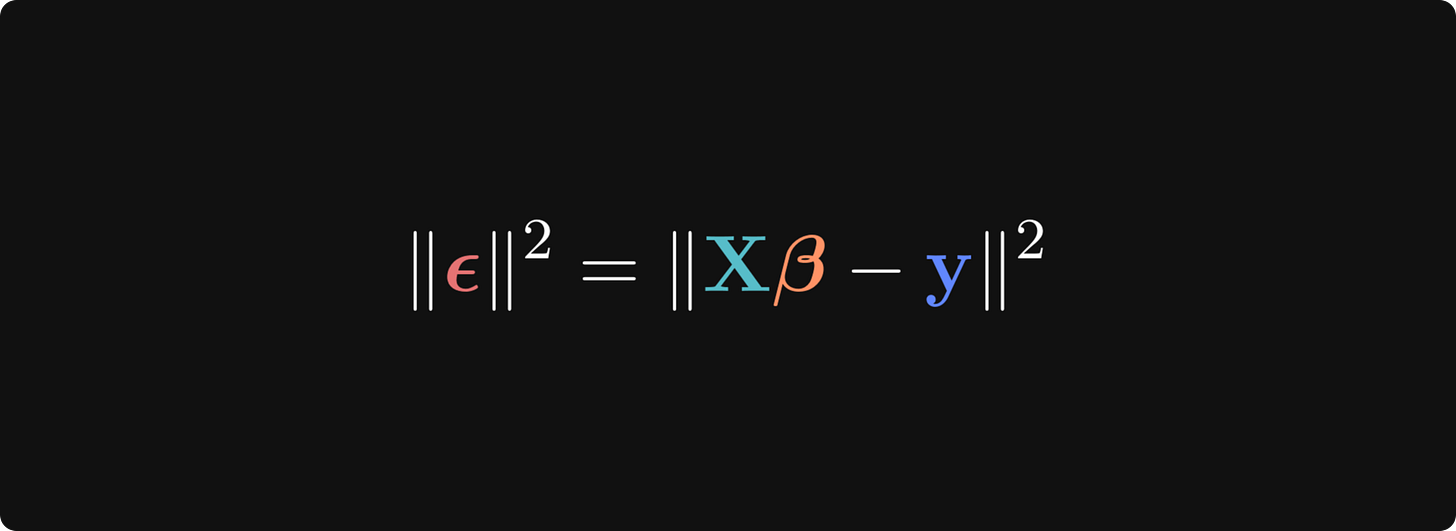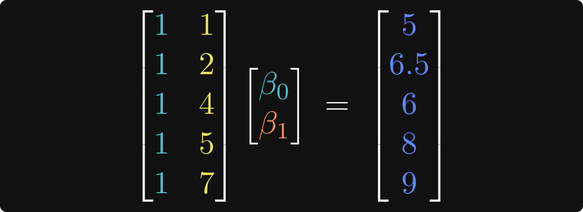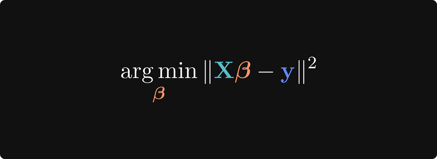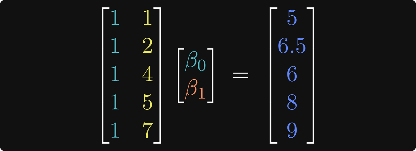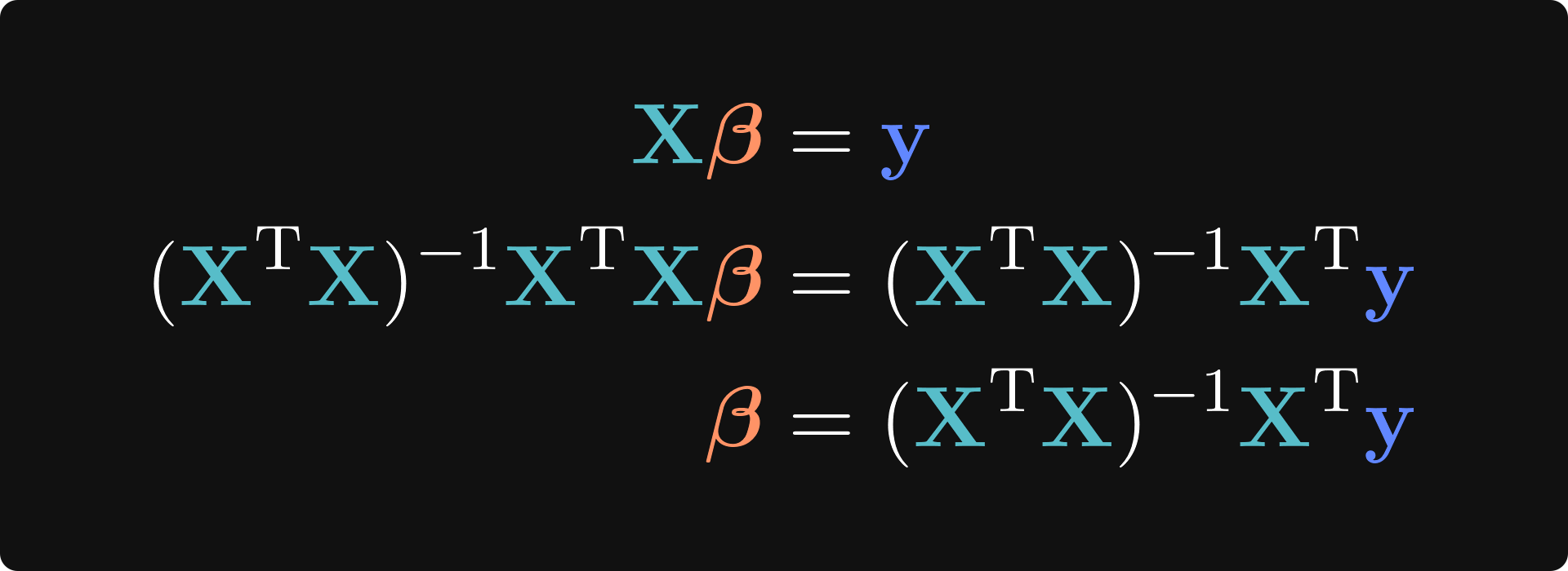 Now, to solve the equation to find the unknown 𝜷 terms. Warning: If you’re a linear algebra noob, the equations in this section might look intimidating, and you might not understand them completely. That’s perfectly understandable; try to focus on the gist without worrying about the details.