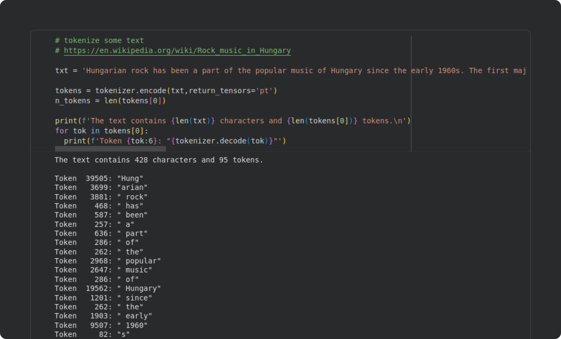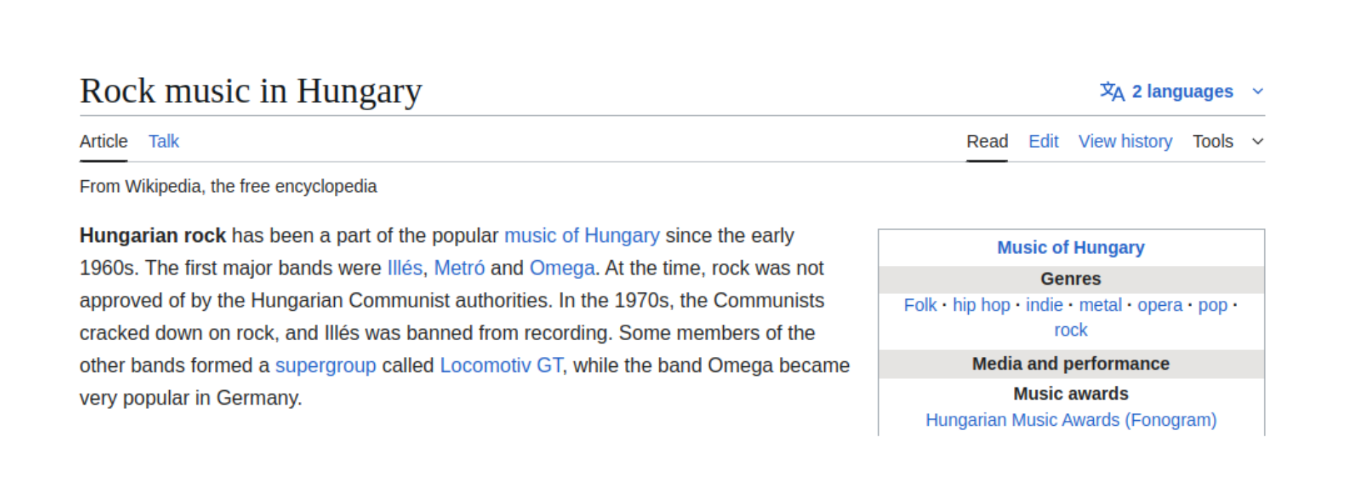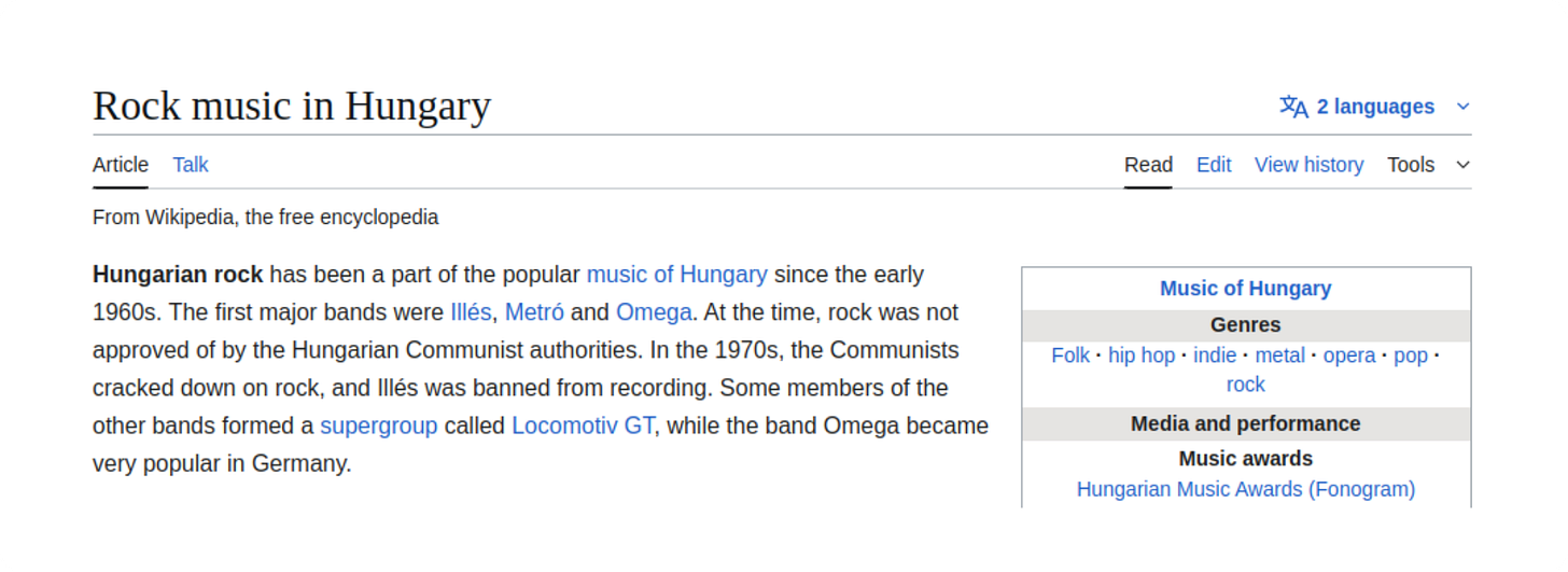 The text I’ve chosen to work with in this post is a paragraph about Hungarian rock music from Wikipedia: