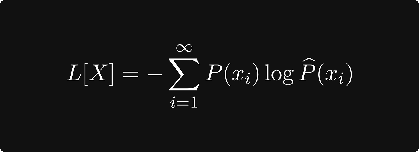 where P is the ground truth (a distribution concentrated to a single class), while the hatted version represents the class predictions. The cross-entropy loss measures how much “information” the predictions have compared to the ground truth. When the predictions match, the cross-entropy loss is zero.