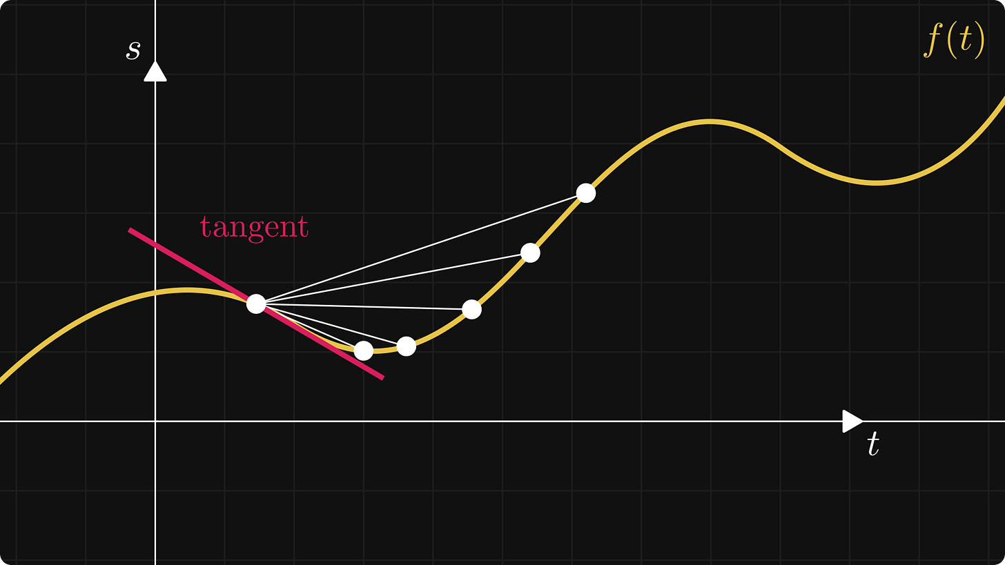 where the ratio for a given h is the slope of the line between the points (x, f(x)) and (x+h, f(x+h)).
