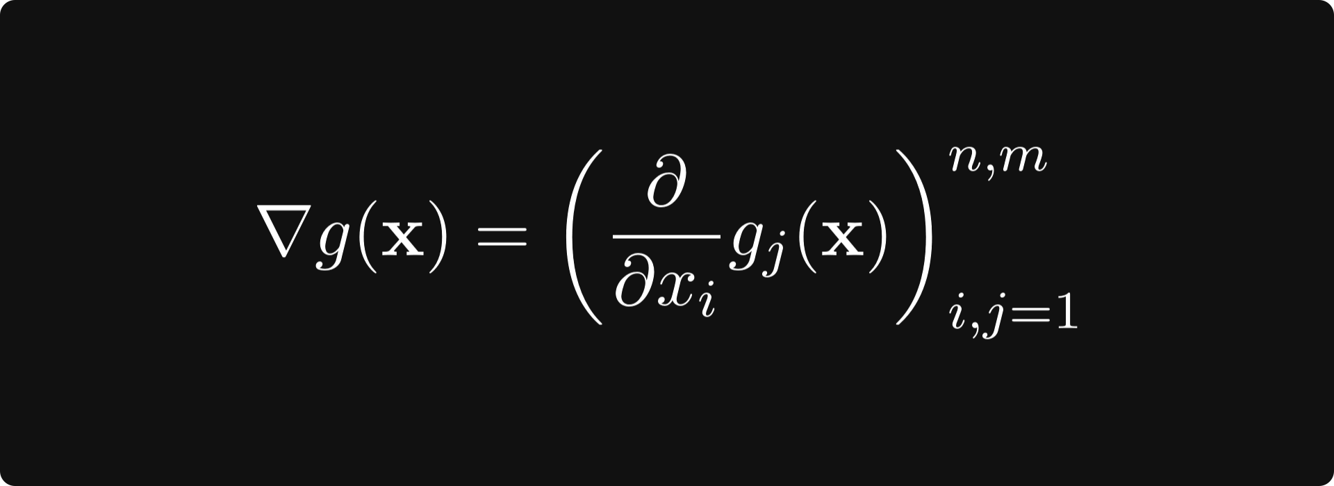 The gradient of g is defined by the matrix whose k-th row is the k-th component’s gradient. That is,