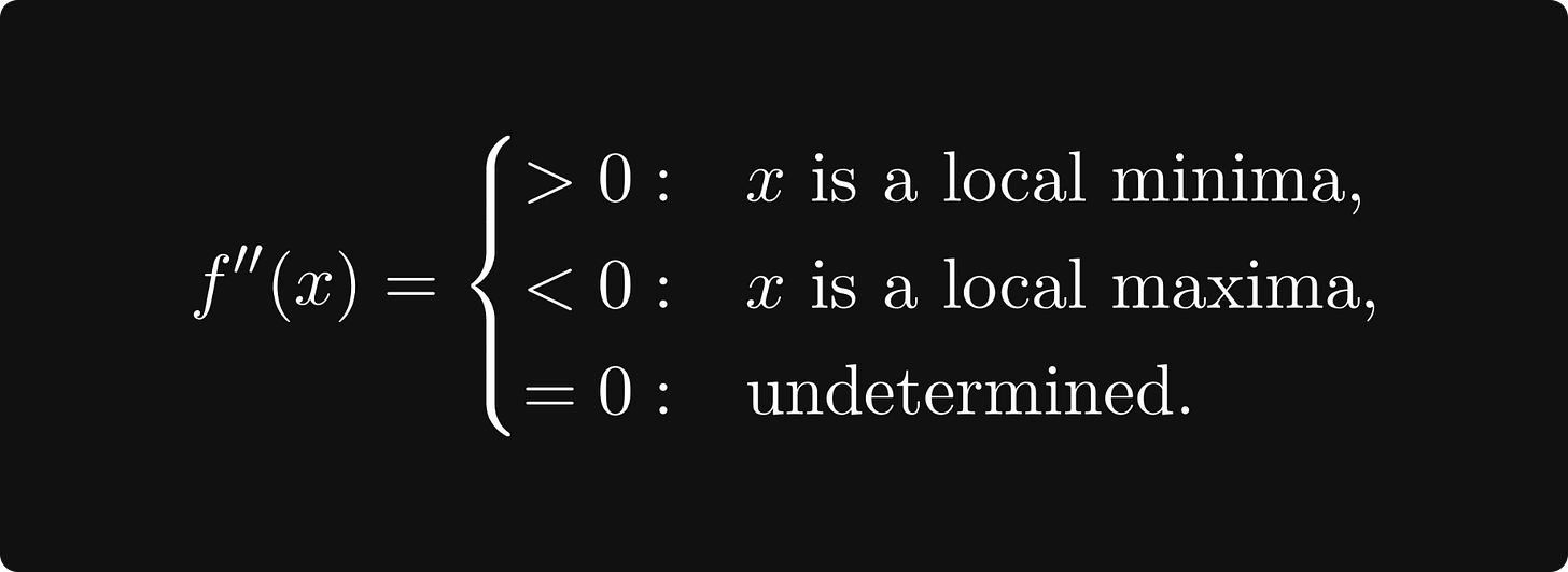 Points where the derivative is zero are called critical points. Whether a critical point is a minimum or a maximum can be decided by looking at the second derivative: