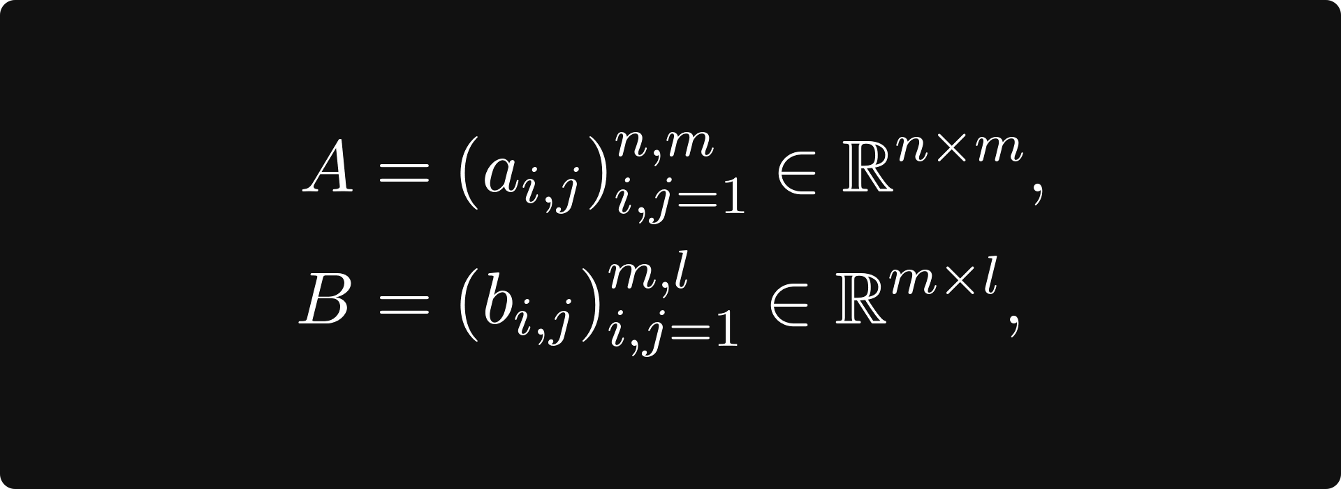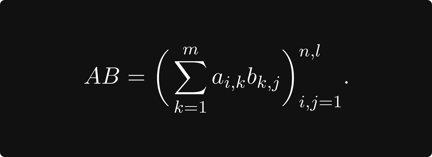 The most important operation for matrices is matrix multiplication, also known as the matrix product. In general, if A and B are matrices defined by
