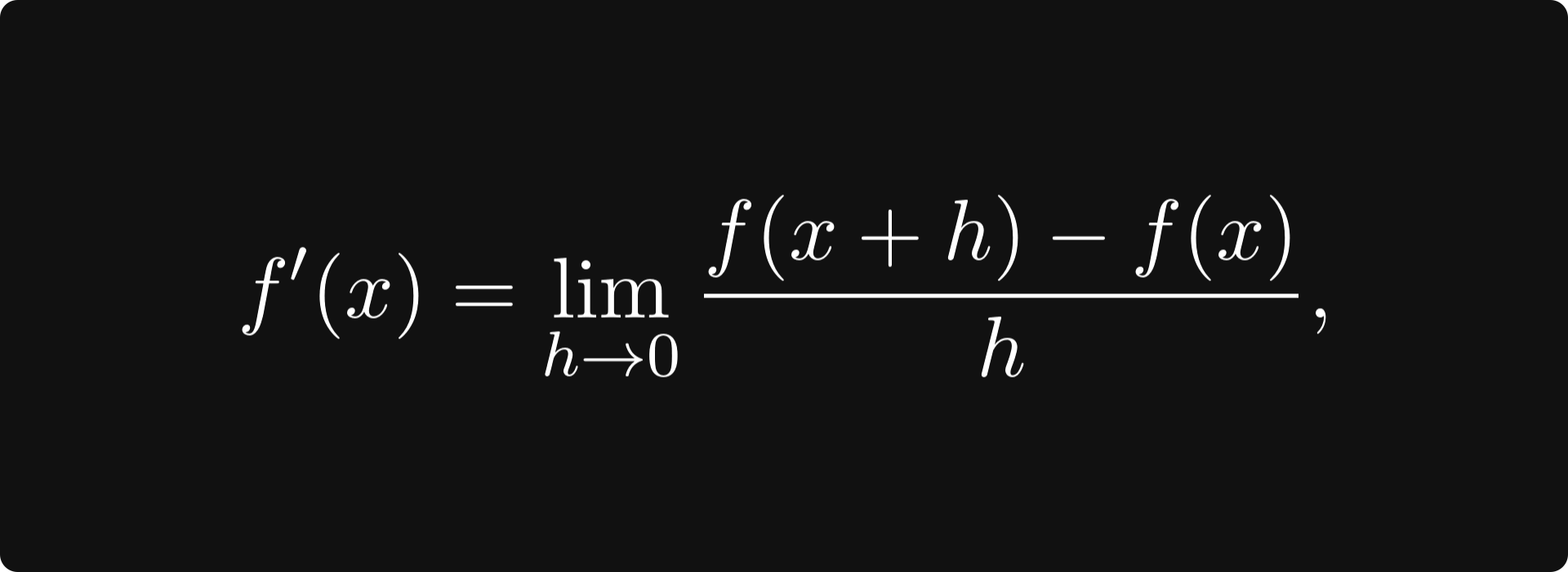 In the limit, this is essentially the slope of the tangent line at the point x. The figure below illustrates the concept.