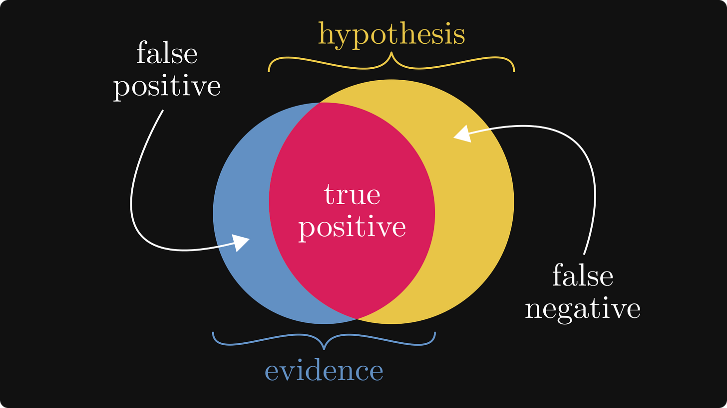 Let’s revisit the story kicking off this whole journey: “muscle fatigue, headache, sore throat → flu“. This is certainly not true in an absolute sense, as these symptoms resemble how you would feel after shouting and drinking excessively during a metal concert. Which is far from the flu.